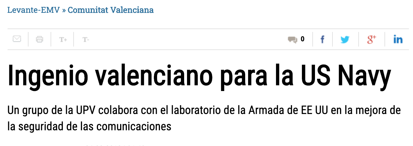 Researchers from the Technical University of Valencia (UPV) collaborate with the Washington Naval Research Laboratory in the development of advanced technologies to improve communications security.