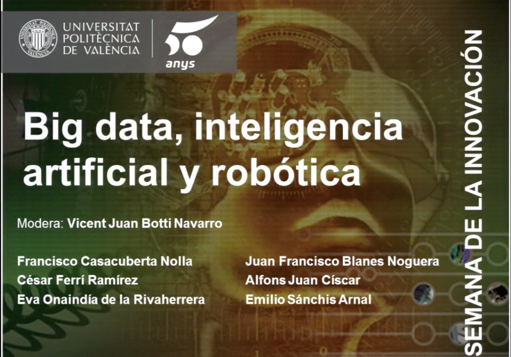 César Ferri participates in the panel discussion on "Big data, inteligencia artificial y robótica" (50th UPV anniversary)
